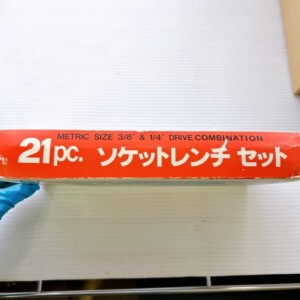 お預かりしたソケットレンチセットは、外箱に経年による擦れや角の傷みが見られる状態でした。内部のブローケースおよびソケット類は保管されており、目立つ欠品は確認されませんでした。ラチェットハンドルやエクステンションバーには使用感が見られるものの、可動部の固着や破損はなく、基本的な使用に問題はない状態でした。