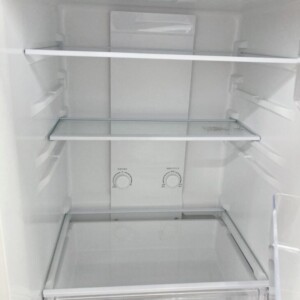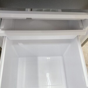 お引き取りした冷蔵庫は、外装に目立つ傷やへこみは見られず、全体的にきれいな状態でした。庫内は棚板・ケース類がすべて揃っており、汚れやニオイの付着もほとんど確認されませんでした。通電後の冷却確認でも問題はなく、冷蔵室・冷凍室ともに正常に稼働していることを確認しています。