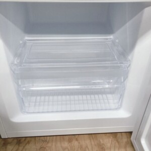 お引き取りした冷蔵庫は、外装に目立つ傷やへこみが見られない良好な状態でした。扉表面には使用に伴う軽微なスレがわずかにあるものの、全体として清潔感があります。庫内はガラス棚・野菜ケース・冷凍室ケースともに割れや欠けはなく、汚れやにおい残りもほとんどありませんでした。通電確認および冷却動作のチェックでも問題はなく、日常使用に支障のないコンディションです。