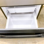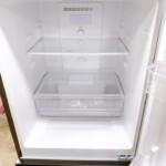 お引き取りした冷蔵庫は、外装に目立つへこみや大きな傷は見られず、全体的に落ち着いた印象のシルバーカラーが保たれていました。表面には使用に伴うごく軽微なスレが確認できましたが、近くで見て分かる程度です。庫内はガラス棚・野菜ケース・冷凍室ケースともに割れや欠けはなく、汚れやにおい残りもほとんどありませんでした。通電確認後の冷却動作や温度調整ダイヤルの反応も問題なく、日常使用に支障のない状態でした。