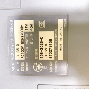 査定をしたNEC製ワープロ JX-S510は本体外観に経年使用による細かな汚れや擦れが見られる状態でした。本体には薄い変色がありましたが、破損や大きな割れは確認されていません。通電確認を行いまだ問題無く稼働する事が確認出来ております。