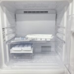 お引き取りした冷蔵庫は、外装がステンレス調のシルバーカラーで、正面・側面ともに目立つへこみや深い傷は確認できませんでした。使用に伴うごく軽微なスレは見られるものの、全体として落ち着いた印象です。庫内は棚板・ケース類がすべて揃っており、割れや欠けもなく清潔感のある状態でした。冷却動作や庫内ファンの動作も問題なく、日常使用に支障のないコンディションです。