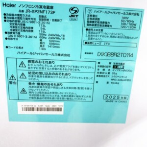 今回は福井県越前市にお住まいの30代男性・会社員・単身世帯のお客様より、Haier(ハイアール)ノンフロン冷凍冷蔵庫 JR-XP2NF173F(2025年製)を出張買取にてご依頼いただきました。