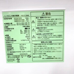今回は福井県丹生郡越前町にお住まいの40代女性・主婦・夫婦世帯のお客様より、ヤマダセレクト ノンフロン冷凍冷蔵庫 YRZ-F15MK(2025年製)を出張買取にてご依頼いただきました。