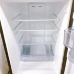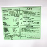 お引き取りした冷蔵庫は、2ドアタイプのノンフロン冷凍冷蔵庫で、日常使いに適したサイズ感のモデルです。庫内については食品の出し入れに伴う軽い使用感が見られましたが、棚板やケースに割れや欠けはなく、冷蔵・冷凍スペースともに実用上の問題はありませんでした。外観は正面および側面に使用に伴う軽度の汚れやスレが確認できましたが、目立つへこみや大きな傷はなく、全体としては年式相応の状態です。通電および冷却動作も確認でき、正常に稼働しています。