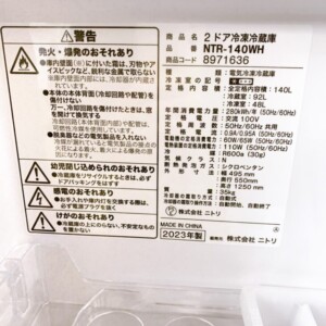 福島県猪苗代町へニトリ 2ドア冷凍冷蔵庫 NTR-140WH 2023年製 出張買取