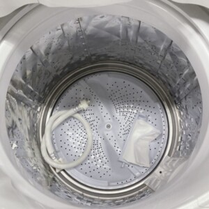 お預かりした洗濯機は、外観に大きなへこみや割れは見られず、操作パネルの表示も正常に確認できました。洗濯槽内は使用に伴う水垢跡はあるものの、著しい汚れや異臭はなく、糸くずフィルター・給水ホースなどの付属品も揃っている状態でした。通電・動作確認も問題ありませんでした。