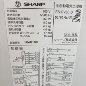 福島県小野町へシャープ 全自動洗濯機 ES-GV8E-S(2021年製)を出張買取|8.0kgインバーター搭載モデルを査定