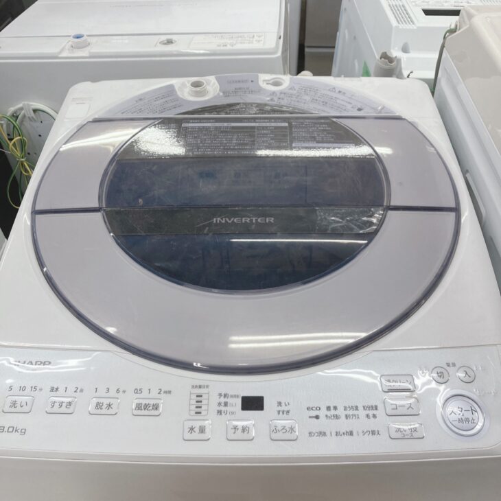 福島県小野町へシャープ 全自動洗濯機 ES-GV8E-S(2021年製)を出張買取|8.0kgインバーター搭載モデルを査定