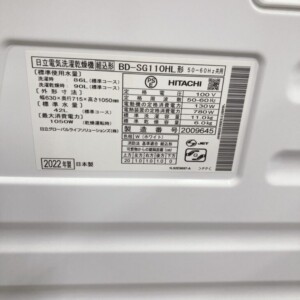 福島県只見町へ出張買取 日立 電気洗濯乾燥機 BD-SG110HL 2022年製 使用感少なめのため適正価格で査定しました