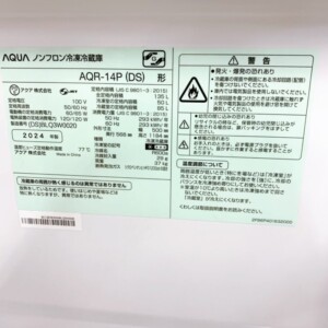 今回は福島県棚倉町にお住まいの40代女性より、AQUA ノンフロン冷凍冷蔵庫 AQR-14P(DS)(2024年製)を出張買取にてご依頼いただきました。