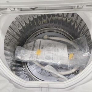 拝見した洗濯乾燥機は、外観に目立つへこみや大きな傷は見られず、全体的に清潔感のある状態でした。操作パネルの文字消えや破損もなく、通電確認のうえ洗い・脱水・乾燥の各動作が正常に行えることを確認しています。槽内はステンレス槽で、強い汚れやサビは確認されませんでした。付属品として給水ホース・排水ホース・取扱説明書が揃っており、総合的に状態は良好でした。