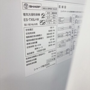 今回は福島県玉川村にお住まいの30代男性より、SHARP 電気洗濯乾燥機 ES-TX6J-W(2025年製)を出張買取にてご依頼いただきました。