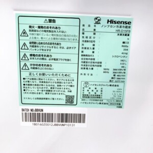 福島県浪江町へハイセンス 冷凍冷蔵庫 HR-D15FB 出張買取 2023年製のため状態を考慮して査定しました