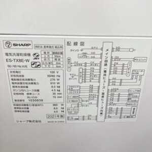 SHARPのES-TX8E-Wは、インバーター搭載で静音性と省エネ性に優れた人気モデルであり、2021年製と比較的新しい点も評価ポイントとなりました。