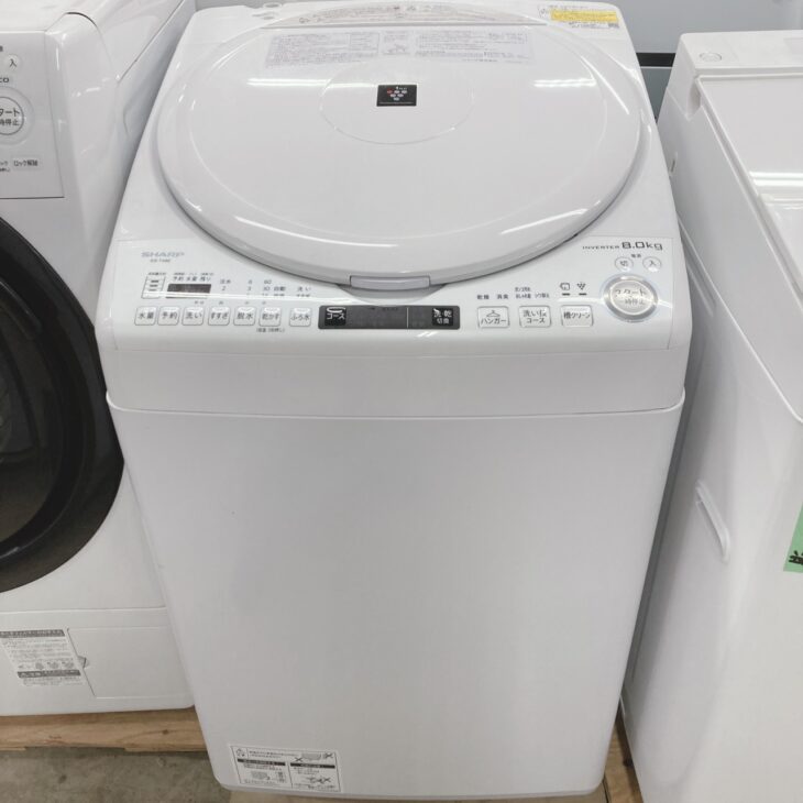 SHARPのES-TX8E-Wは、インバーター搭載で静音性と省エネ性に優れた人気モデルであり、2021年製と比較的新しい点も評価ポイントとなりました。