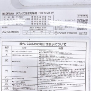 今回は福島県西白河郡西郷村にお住まいの40代女性のお客様より、IRIS OHYAMA(アイリスオーヤマ)製 ドラム式洗濯乾燥機 DKC85A1-W(2024年製)を出張買取にてご依頼いただきました。