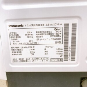 福島県耶麻郡磐梯町へ出張買取 Panasonic ドラム式洗濯乾燥機 NA-SD10HAL 2025年製 付属品ありで丁寧に査定しました