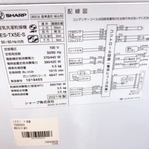 福井県あわら市へ出張買取 SHARP 電気洗濯乾燥機 ES-TX5E-S 2021年製 使用感が見られるため状態を考慮して査定