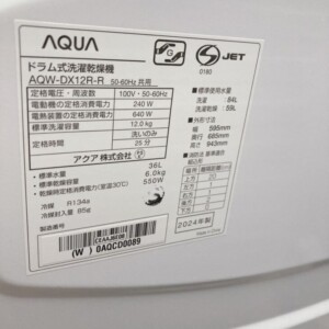 福井県小浜市へ出張買取 AQUA ドラム式洗濯乾燥機 AQW-DX12R-R 2024年製 使用感を考慮しつつ状態良好のため査定しました