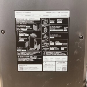 お預かりしたダイキン MCK55Z-Tは、外装に軽度のスレや使用感は見られましたが、大きな割れや破損はありませんでした。 動作確認では空気清浄・加湿ともに正常に稼働しており、操作パネルや表示部にも問題はありません。 内部のフィルターには使用に伴う汚れはありましたが、日常使用範囲内と判断できる状態でした。