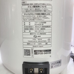 今回は福島県新地町にお住まいの40代女性・主婦・夫婦世帯のお客様より、象印 スチーム式加湿器 EE-RU50(2025年製)を出張買取にてご依頼いただきました。安全性と加湿力の高さで人気のスチーム式モデルで、冬場を中心に使用されていた加湿器です。