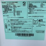 今回は福島県南会津町にお住まいの40代男性・会社員・単身世帯のお客様より、Haier(ハイアール)ノンフロン冷凍冷蔵庫 JR-M20A(2024年製)を出張買取にてご依頼いただきました。