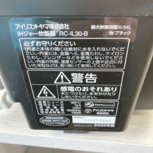 福井県永平寺町へIRIS OHYAMA IH炊飯器 RC-IL30-B(2023年製)買取 使用感を考慮し適正価格で査定しました