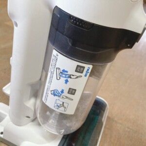 本体は日常使用による細かな擦れやダストカップ内の使用感が見られましたが、破損や割れはなく、吸引動作・ヘッド回転ともに正常でした。ダストカップの着脱もスムーズで、実用面に問題はありません。