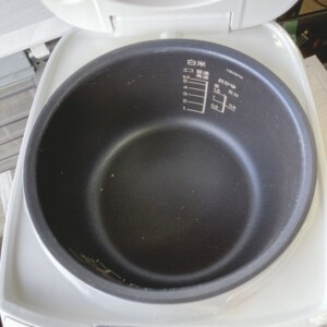 内釜には日常使用に伴う細かな擦れや使用感が見られましたが、コーティングの大きな剥がれは確認されませんでした。本体外装は全体的にきれいな状態で、通電および基本的な炊飯動作についても問題なく確認できています。