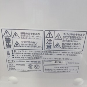 福島県耶麻郡北塩原村へ出張買取 オーブントースター PPIT-TS1000-WH 使用感あり 年式不明のため無料引き取りとなりました