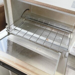 お引き取りしたKOIZUMIのオーブントースターは、外観に使用に伴う汚れがあり、庫内には多少焦げ跡や焼き付きが見受けられる状態でした。加熱やタイマーなどの基本動作は確認できましたが、年式が経過している点と使用感から、再販向けとしては評価が難しいコンディションでした。付属品は本体のみで、トレーや説明書はありませんでした。