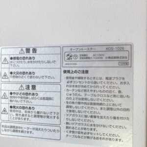 福島県下郷町へKOIZUMI オーブントースター KOS-1026 買取 年式相応の使用感を考慮して無料引き取りいたしました