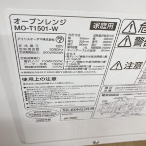 今回は福島県中島村にお住まいのお客様より、アイリスオーヤマ製 オーブンレンジ MO-T1501-W(2020年製)の出張買取をご依頼いただきました。