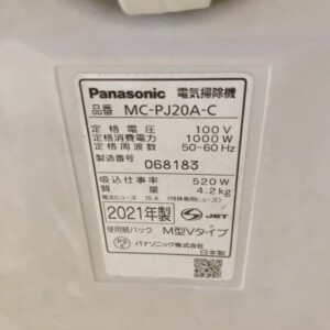 福岡県中間市へ出張買取 Panasonic MC-PJ20A-C 電気掃除機 2021年製 使用感・外装擦れありのため状態を踏まえて査定しました
