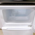 拝見した冷凍冷蔵庫は、外装に目立つへこみや大きな傷はなく、全体的に使用感の少ない状態でした。庫内も清潔に保たれており、棚板・ドアポケット・冷蔵室下段ケースなどの付属パーツも揃っています。通電確認後、冷蔵・冷凍ともに冷却動作は良好で、異音や結露も見られませんでした。