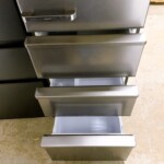 本体外観はシルバー系カラーで、正面・側面ともに目立つ凹みや大きな傷はなく、日常使用に伴う細かな擦れが見られる程度でした。庫内は棚・ケース・ドアポケット類がすべて揃っており、欠品や破損は確認されませんでした。冷却動作、庫内灯、操作パネルの反応も問題なく、冷蔵・冷凍ともに正常に稼働している状態でした。