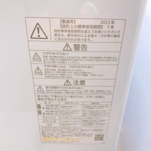 お預かりした洗濯機は2023年製と非常に新しく、外観には目立つへこみや大きな傷は見られませんでした。操作パネルの文字消えや割れもなく、全体的に使用感の少ない印象です。