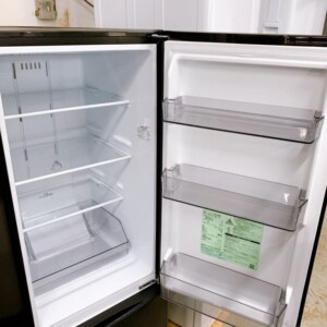 お預かりした冷凍冷蔵庫は、冷蔵室・冷凍室ともに目立つ汚れや変色はなく、全体的に清潔感のある状態でした。棚板やドアポケット、ケース類も揃っており、割れや欠けは確認されていません。外観については、使用に伴うごく軽微な擦れは見られましたが、大きな傷やへこみはなく、日常使用に支障のない状態でした。動作確認でも冷却は安定しており、実用面での問題はありません。