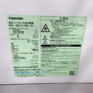 今回は福井県池田町にお住まいの30代男性のお客様より、TOSHIBA(東芝)ノンフロン冷凍冷蔵庫 GR-U17BS(2022年製)の出張買取をご依頼いただきました。