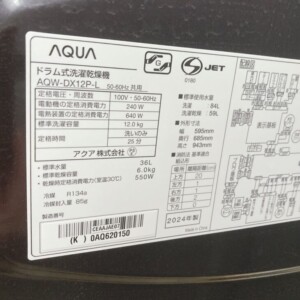 福島県南会津郡檜枝岐村へ出張買取 AQUA ドラム式洗濯乾燥機 AQW-DX12P-L 2024年製 美品のため適正価格で査定しました