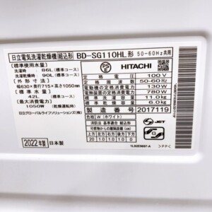 今回は福岡県中間市にお住まいの30代男性より、日立 ドラム式洗濯乾燥機 BD-SG110HL(2022年製)の出張買取をご依頼いただきました。