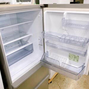 お引き取りした冷蔵庫は2021年製で、冷却状態や庫内灯の点灯、運転音などの動作確認を行ったところ、使用に支障となる不具合は見られませんでした。外観はシルバーカラーで、目立つへこみや大きな傷はなく、日常使用に伴うごく軽微な擦れが確認できる程度です。庫内は棚・ケース類が揃っており、汚れやニオイも少なく、全体的にきれいな印象でした。