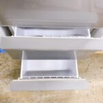 お引き取りした冷蔵庫は2021年製で、冷却状態や庫内灯の点灯、運転音などの動作確認を行ったところ、使用に支障となる不具合は見られませんでした。外観はシルバーカラーで、目立つへこみや大きな傷はなく、日常使用に伴うごく軽微な擦れが確認できる程度です。庫内は棚・ケース類が揃っており、汚れやニオイも少なく、全体的にきれいな印象でした。
