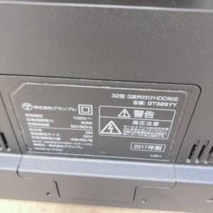 福島県岩瀬郡天栄村にてグランプレ 32型液晶テレビ GT32SYY やや使用感ありを出張買取しました