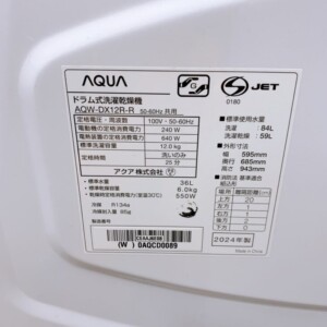 今回は福島県富岡町にお住まいの40代男性のお客様より、AQUA ドラム式洗濯乾燥機 AQW-DX12R-R(2024年製)の出張買取をご依頼いただきました。