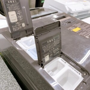 お預かりしたドラム式洗濯乾燥機は、外観に目立つ傷やへこみは見られず、天面や操作パネルも比較的きれいな状態でした。槽内はステンレス部分に強い汚れや水垢はなく、使用感はあるものの清潔感があります。洗剤・柔軟剤の自動投入ケースにも破損はなく、洗い・すすぎ・脱水・乾燥まで一連の動作確認を行い、正常に稼働することを確認しました。