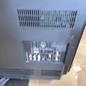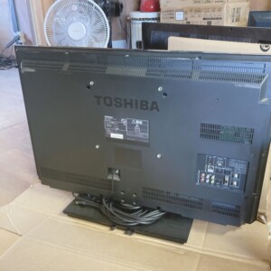 お預かりした液晶テレビは、通電・映像表示ともに問題なく確認できました。画面には目立つ割れや大きな傷はなく、フレーム部分に経年による細かなスレが見られる程度です。背面端子部も良好で、HDMI端子・AV入力端子の接続状態も正常でした。スタンド付きで、自立設置が可能な状態です。