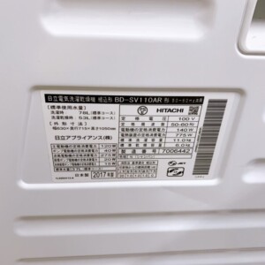 福島県会津美里町にて日立 電気洗濯乾燥機 BD-SV110AR 2017年製を出張買取 使用による汚れはあるものの動作良好のため適正価格で査定しました