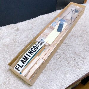 お預かりしたフラミンゴ40SRは未組立のキット状態で、バルサ材・図面・ステッカー類などの内容物が確認できました。外箱には保管に伴う軽度のスレや角の傷みが見られましたが、主要パーツに破損や欠品はなく、再販に支障のない状態でした。未組立である点は査定上のプラス要素となりました。